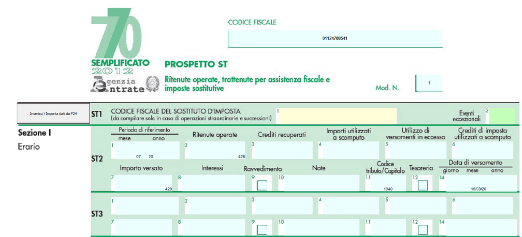 Un sostituto di imposta ha erogato ad un collaboratore esterno nel 2014 dei redditi derivanti dall’utilizzazione economica di opere dell’ingegno, di brevetti industriali e di processi, formule e informazioni relativi a esperienze acquisite in campo industriale, commerciale o scientifico. Tali redditi, pari a € 2.000 lordi, sono stati percepiti in seguito ad acquisto a titolo oneroso dei diritti alla loro utilizzazione. Le ritenute operate ammontano a € 300.
